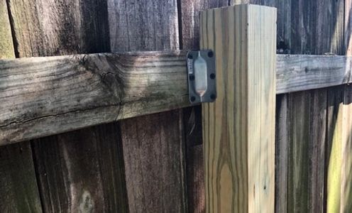 Materials: Your choices for a post replacement are a treated wood 4x4 or a schedule 20 steel post. Wood posts last about 10 years and are cheaper to install. Steel posts last a couple decades but are more expensive. Landscape timbers are a third choice (standard in most new home sub division fences). They are the cheapest post to install. For a few (literally) dollars more you get a 4x4 post with twice the life. We only install landscape timbers if the homeowner specifically requests them.